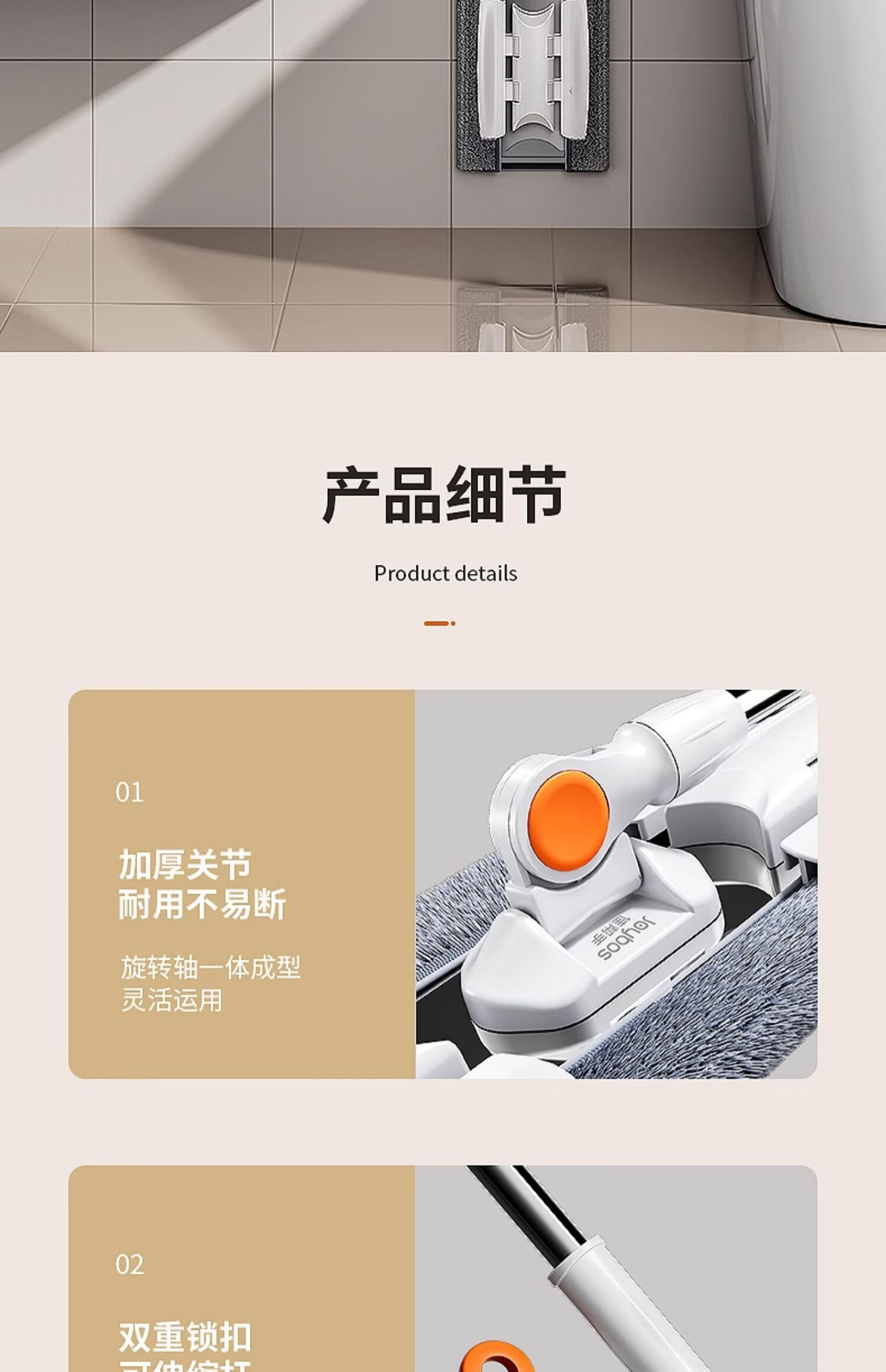 佳帮手平板拖把40cm*1块布夹布合金底板可伸缩杆懒人家用一拖净拖地神器