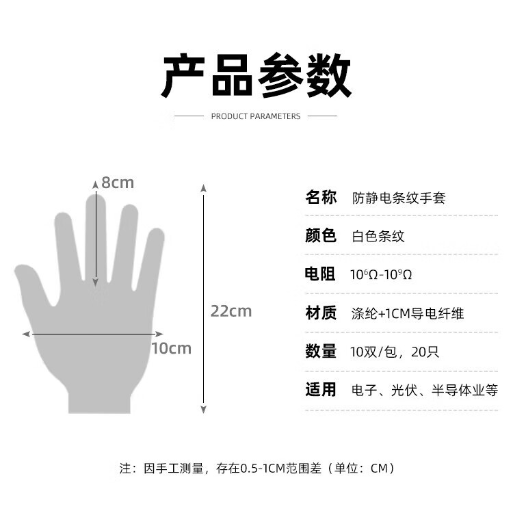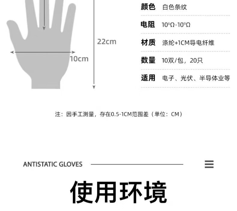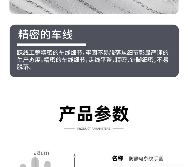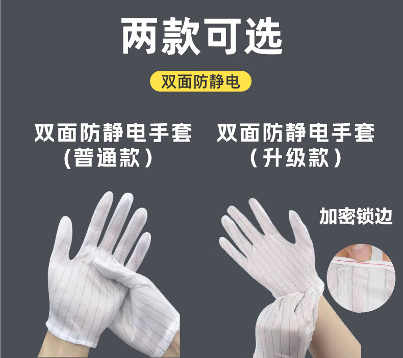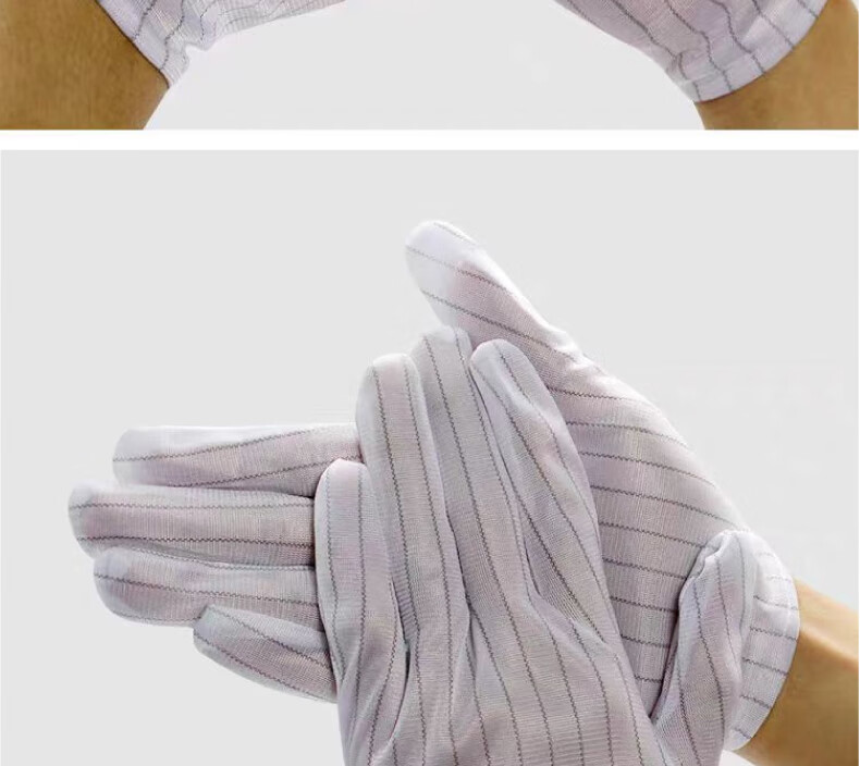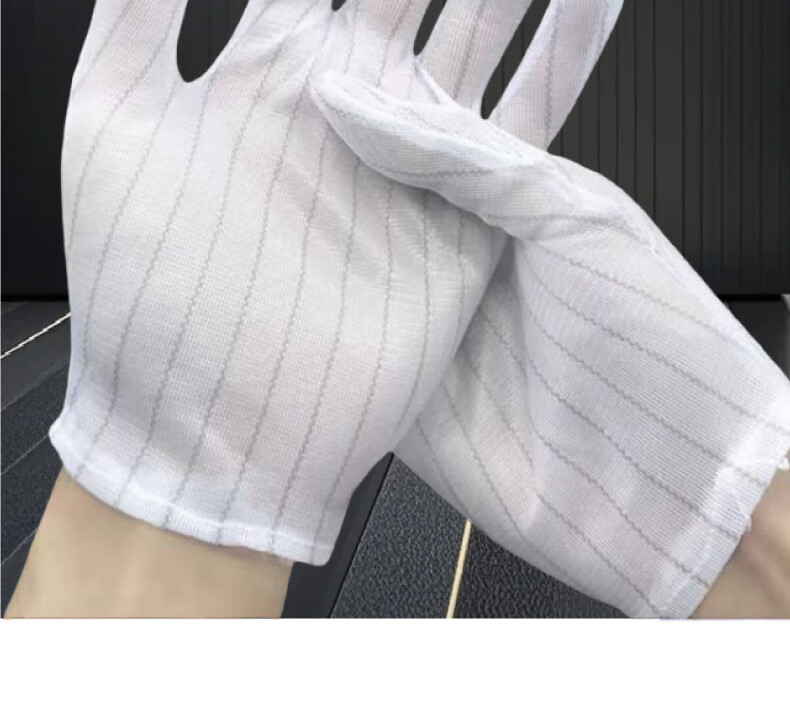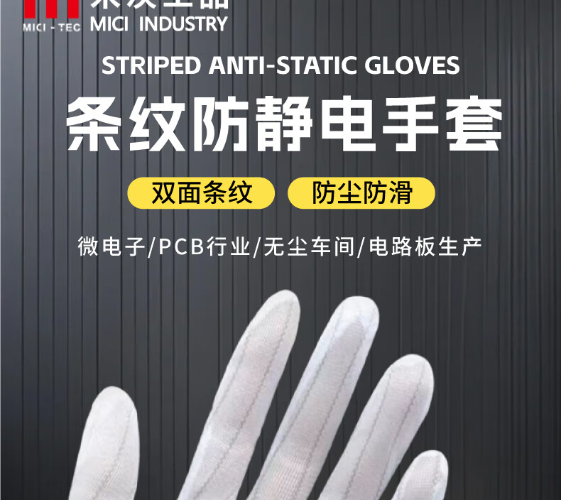 米茨 防静电手套 无尘条纹防静电手套电子厂装机劳保手套防滑耐磨防尘 普通款10双/包
