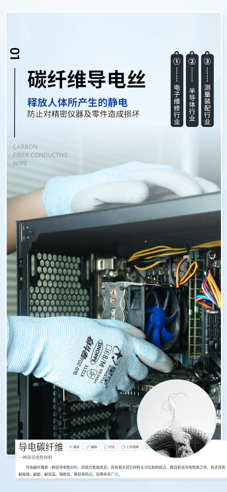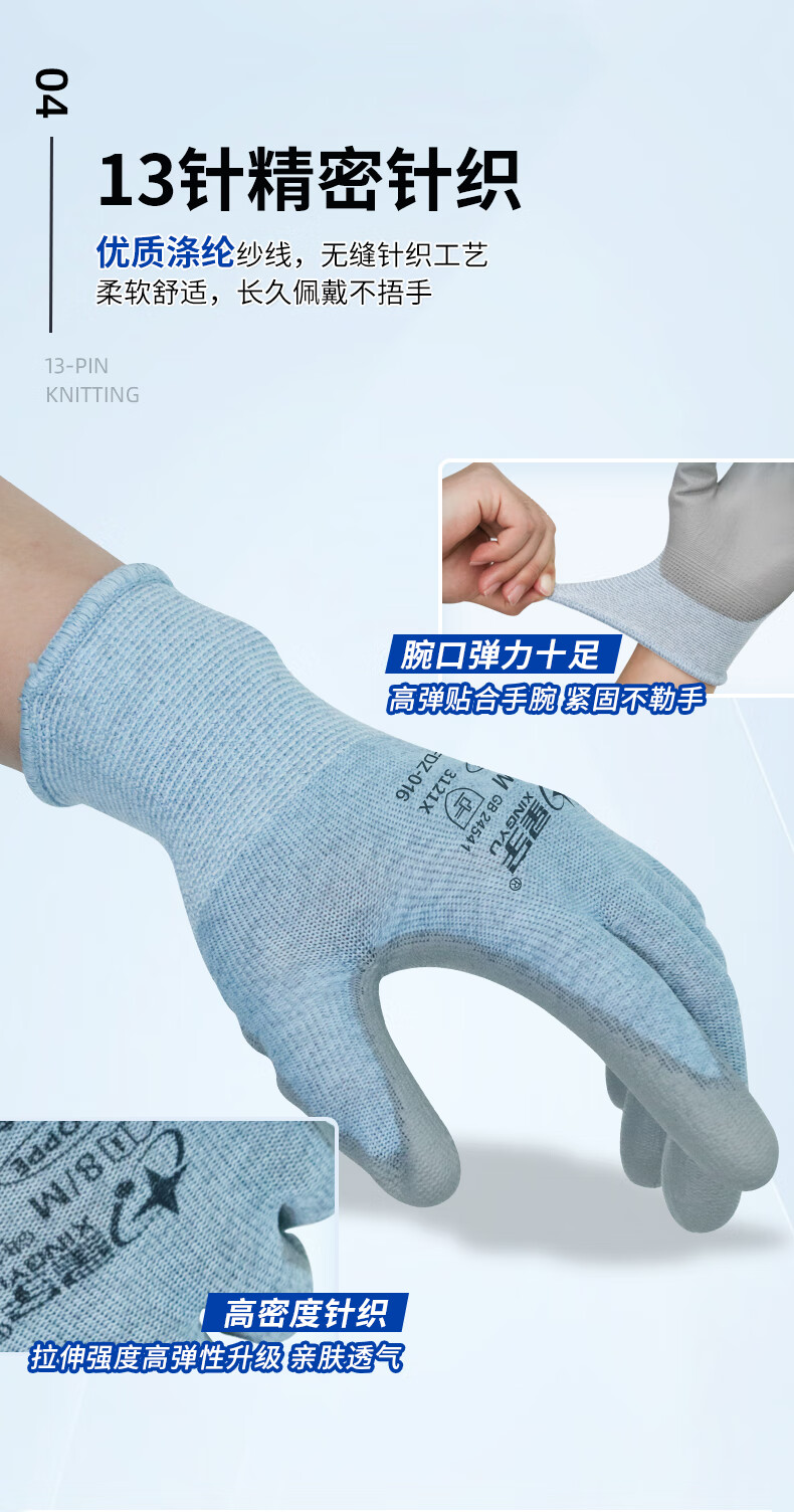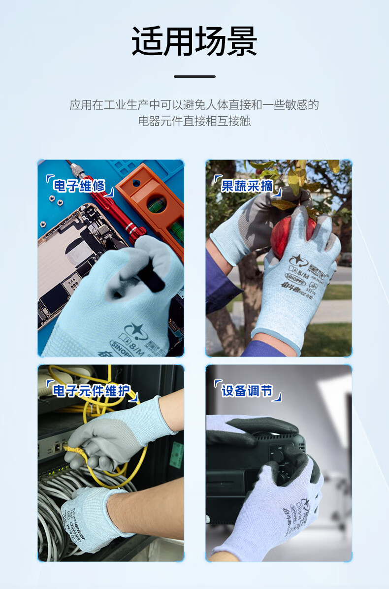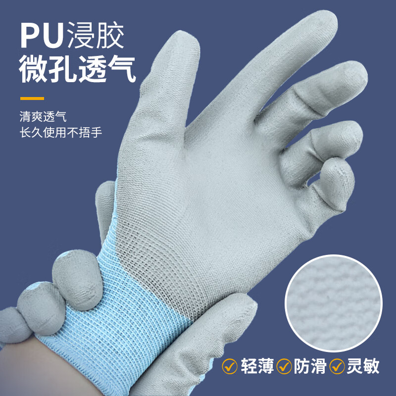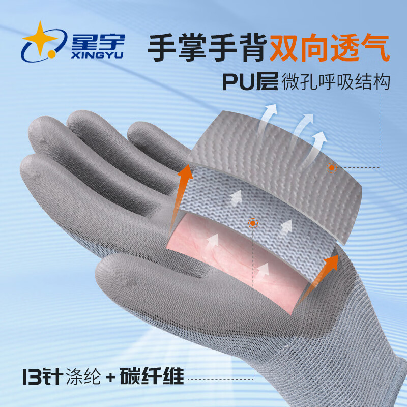 星宇防静电手套薄款透气无尘车间电脑装机碳纤维PU胶涂掌1双男女均码M