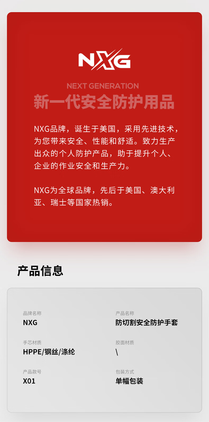 NXG 防割手套 X01木工防割伤 5级手指防切割 轻便男劳保防护