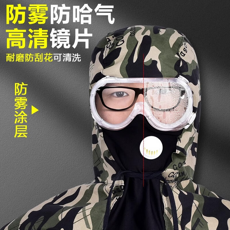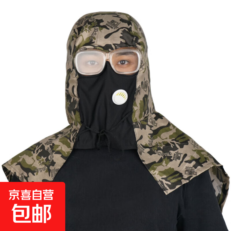 迷彩披风帽防尘劳保牛仔披肩帽防灰防工业粉尘打磨面罩透气耐磨 星星精品防尘披肩帽【带防雾眼镜呼吸阀】
